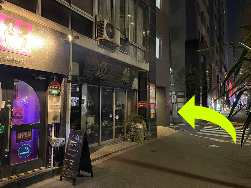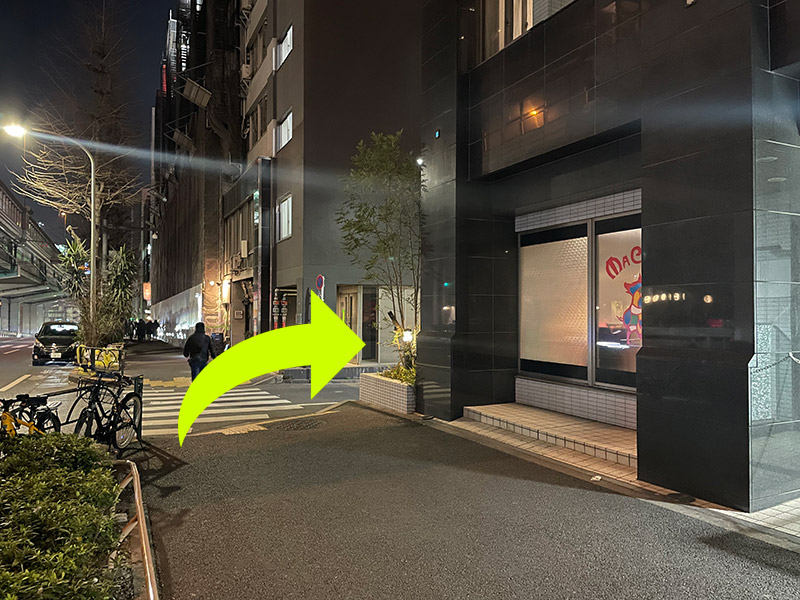 - ① EX THEATER ROPPONGI」を過ぎて1分歩くと、脇道があります。